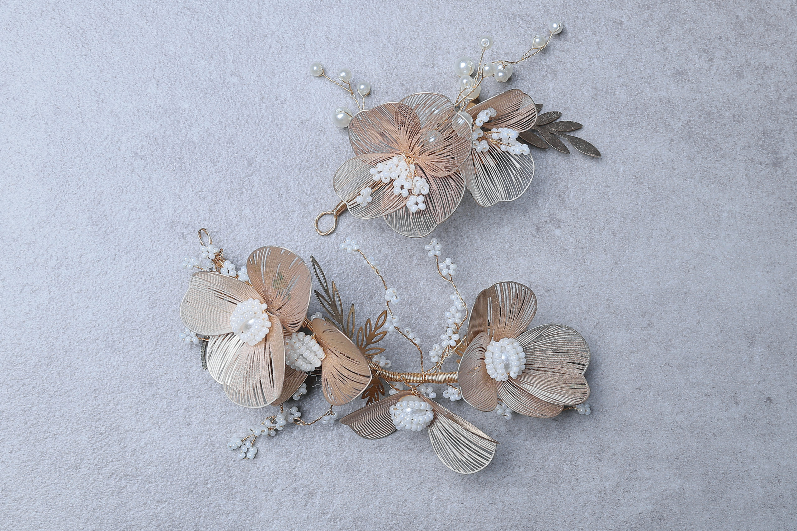 【アクセサリー・靴一式レンタル】をご利用のお客様 ドレスやヘアスタイル に合わせた髪飾りを 当日ご準備致します。 担当スタッフとご相談しながら お好みに合わせてお選びいただけます。 ※事前にご希望のアクセサリーがございましたら 公式LINEにてお知らせくださいませ。 ※急な破損・汚れ等により ご希望のアクセサリーを ご案内できかねる場合がございます。 予めご了承くださいませ。