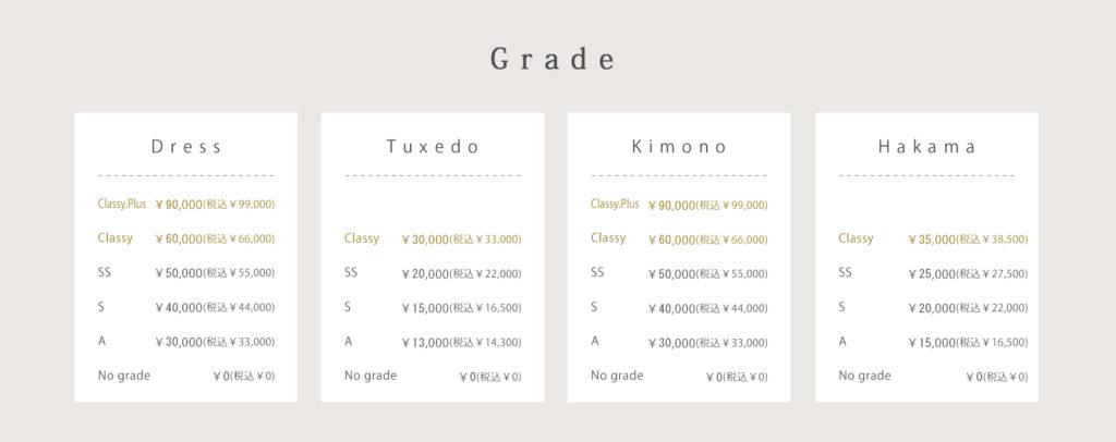 -衣装アップグレード料金ー