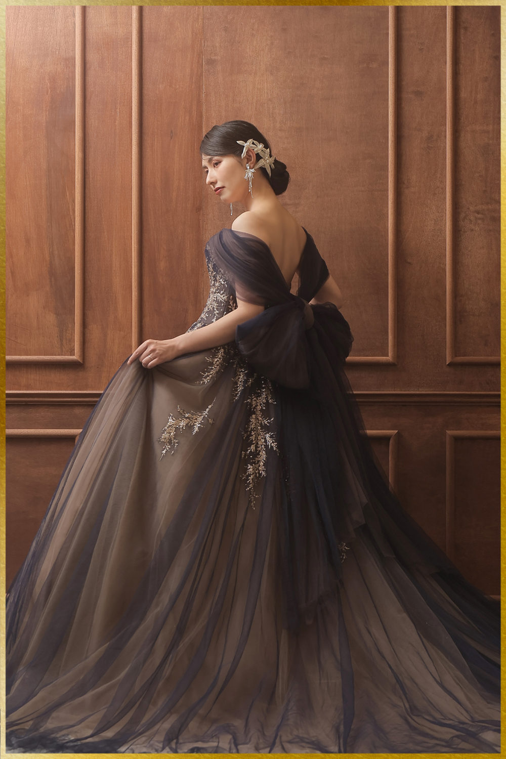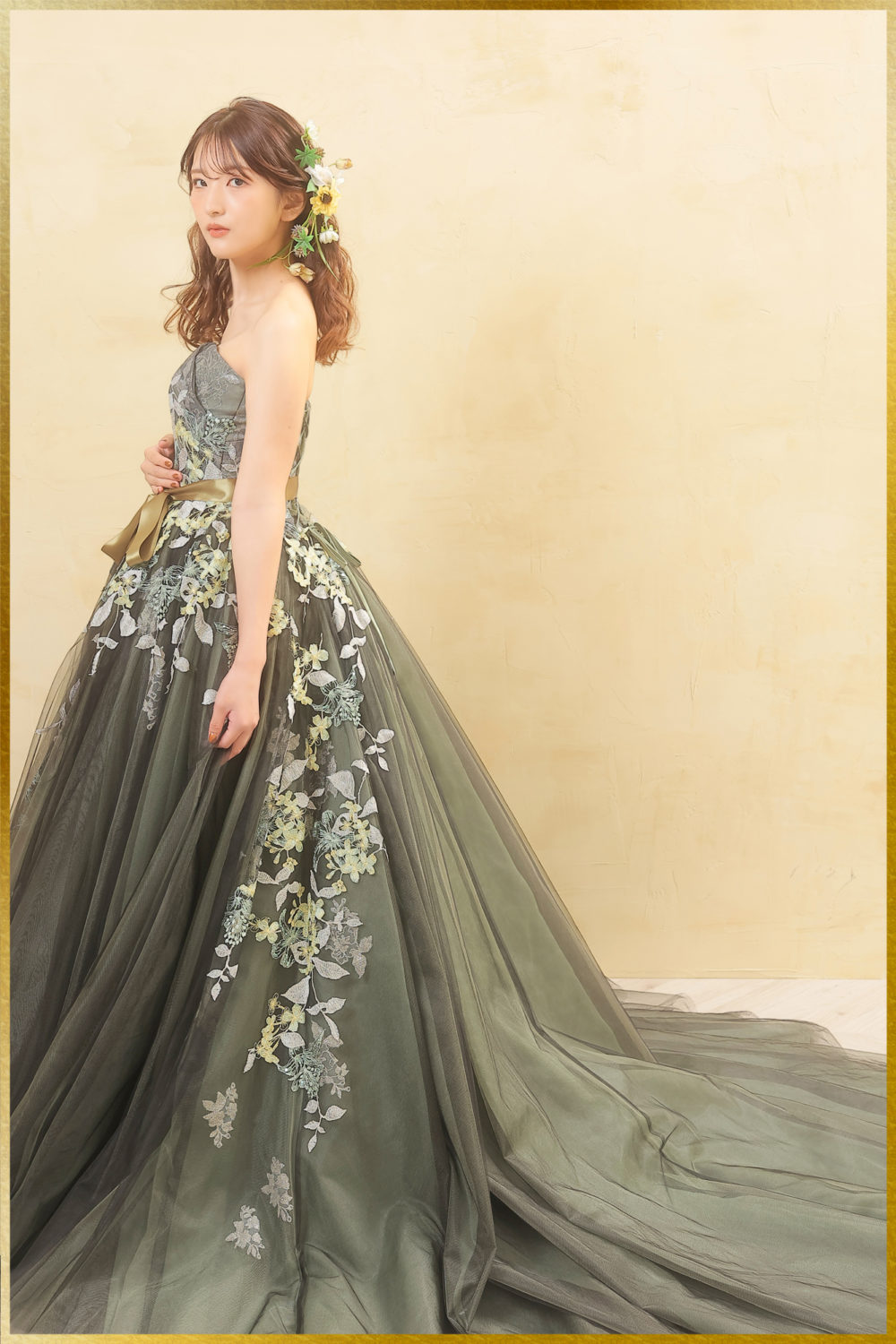 モスグリーン×ブラックのチュールの落ち着いた色味