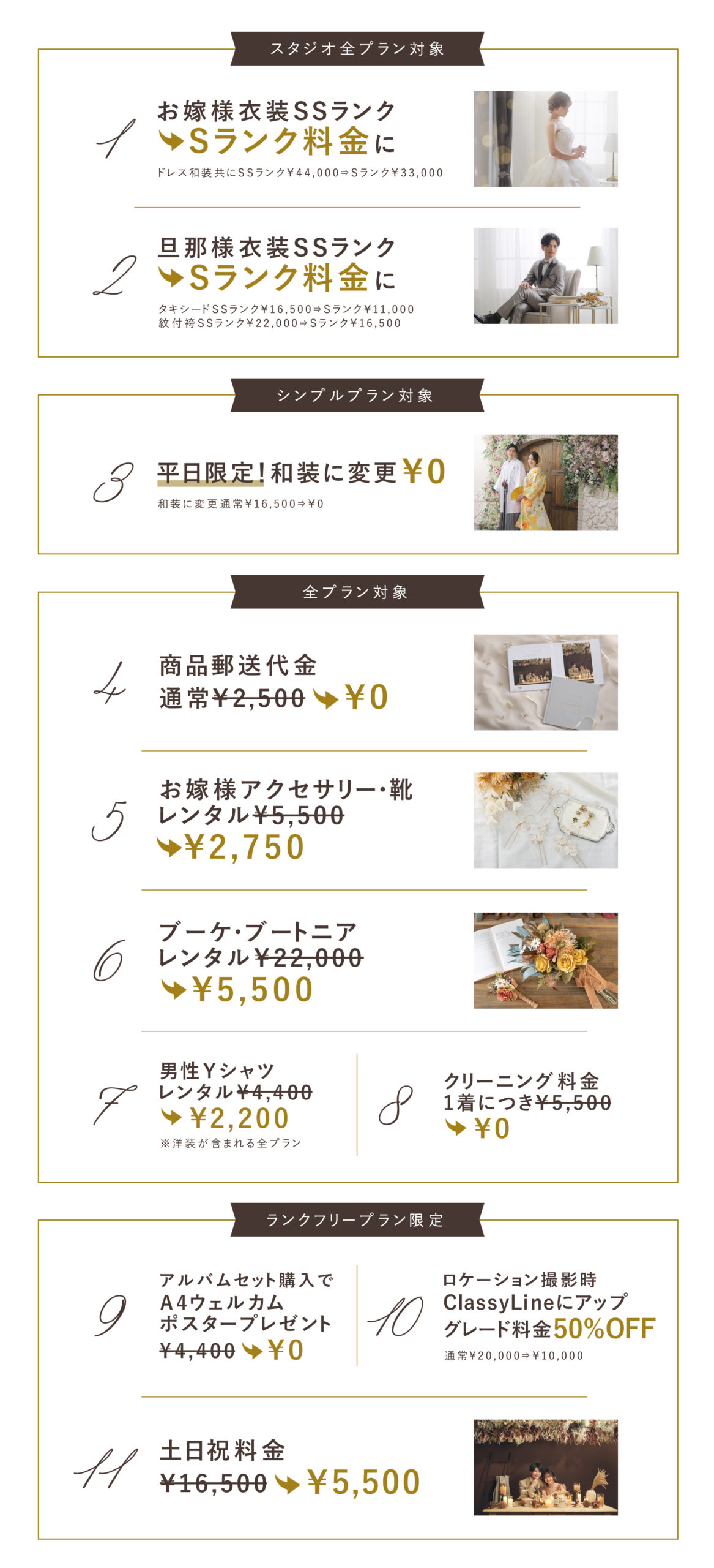 新作のお衣装もお得にお選び頂ける嬉しい特典◎