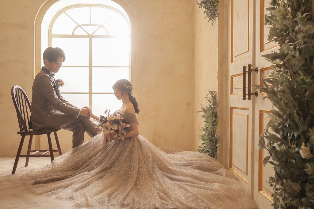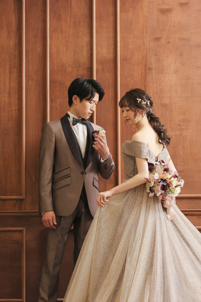 ドレスのグリッターやタキシードの質感も綺麗♩