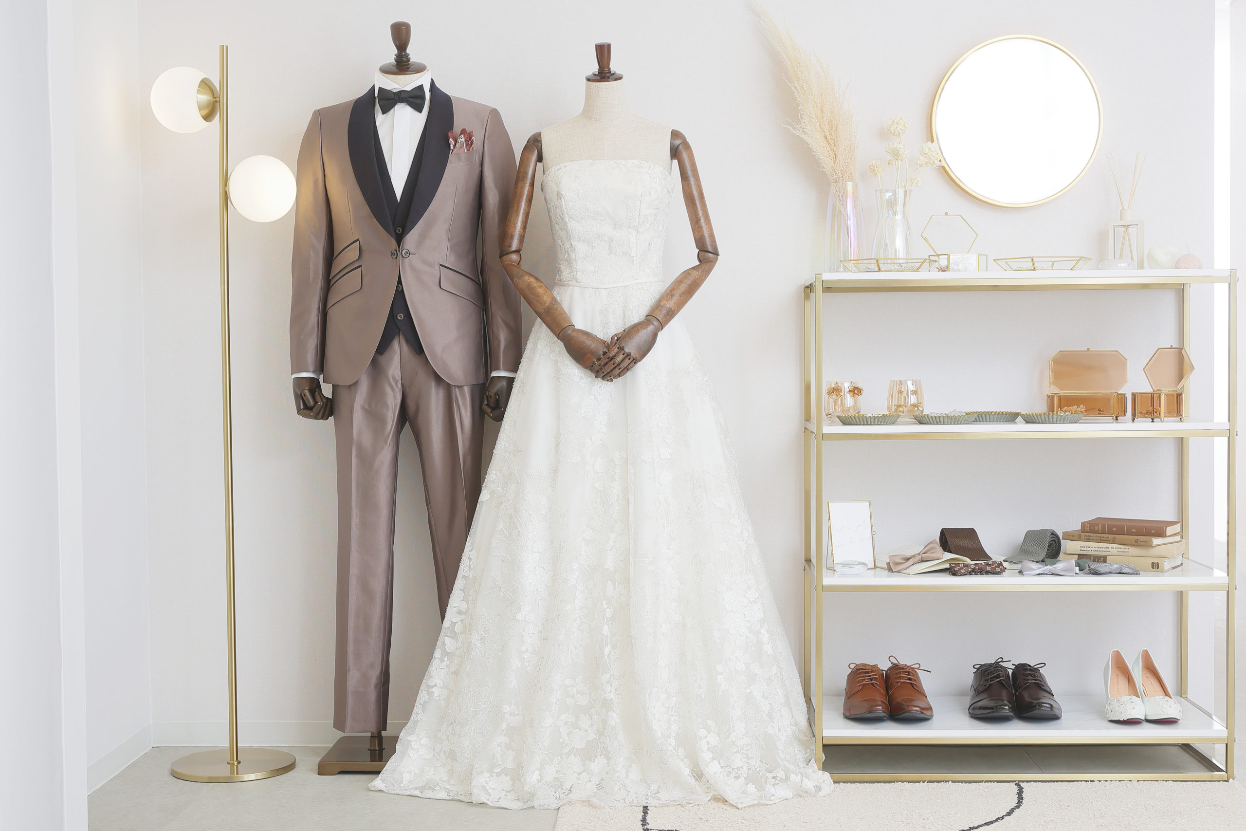 実際にどんなドレスやタキシードを着てみて