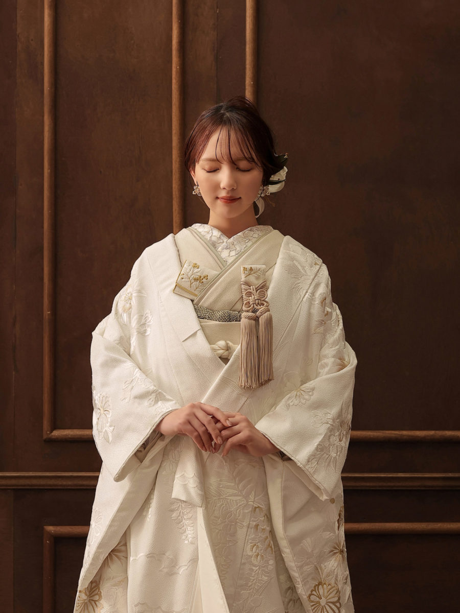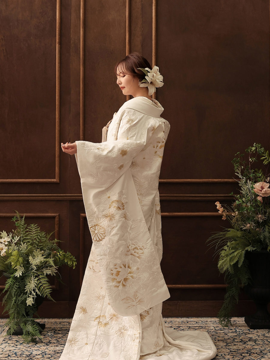 ゴールドの刺繍が素敵な純白の白無垢