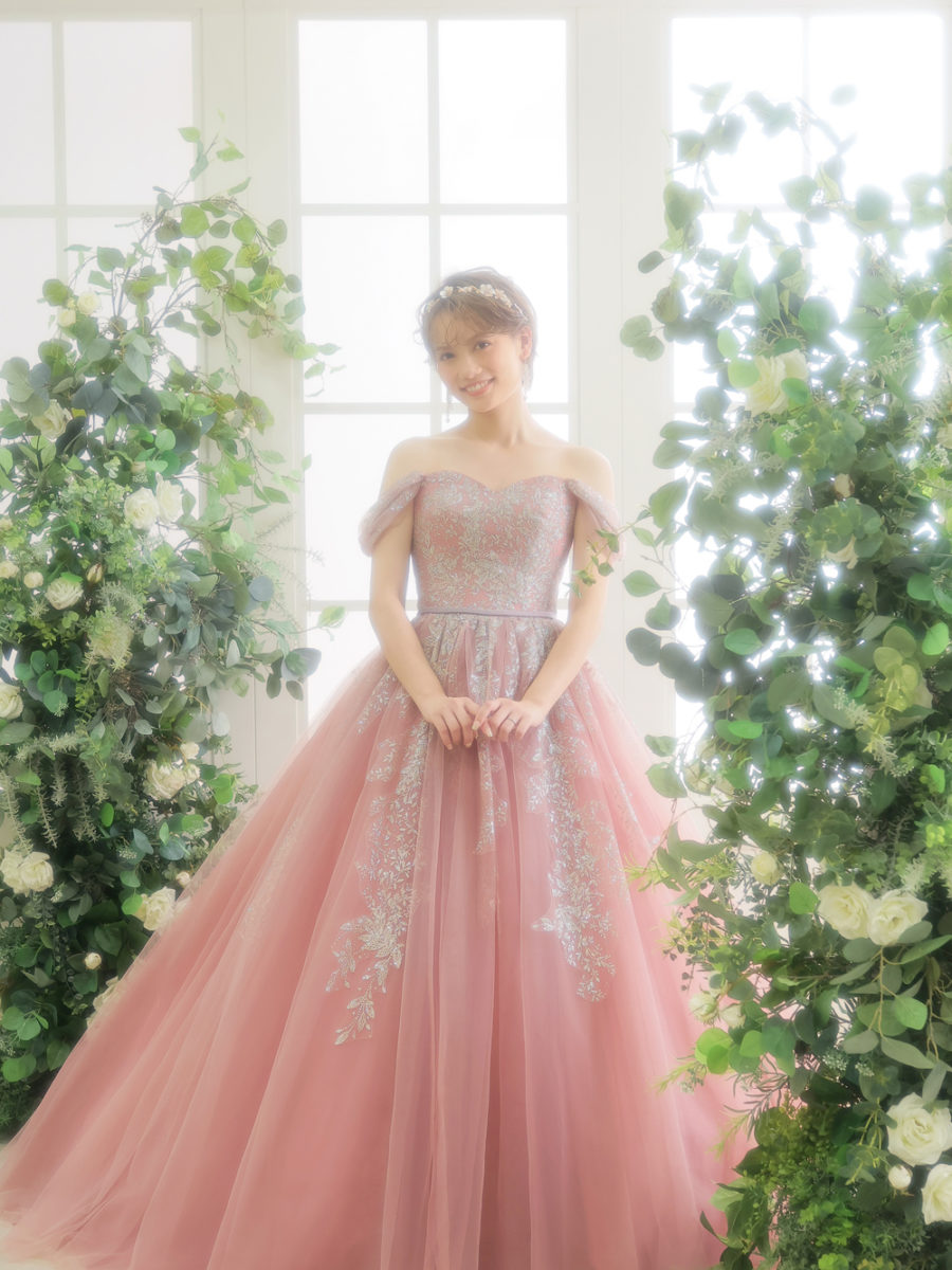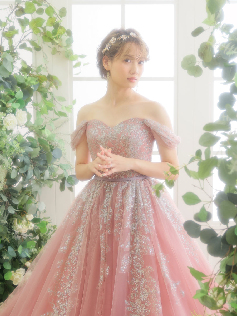くすみピンクのカラードレス。