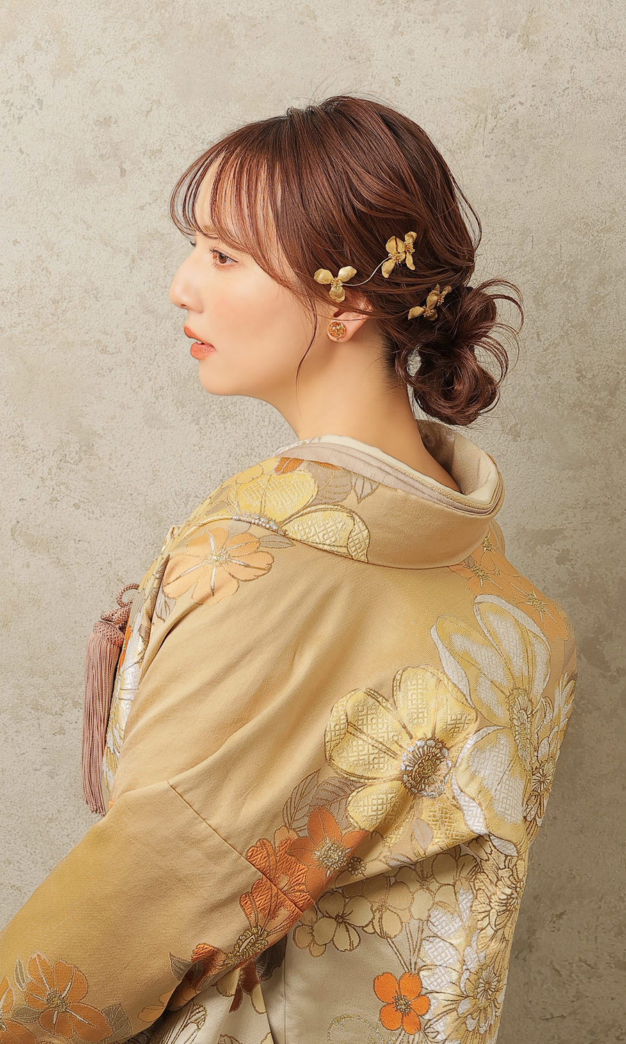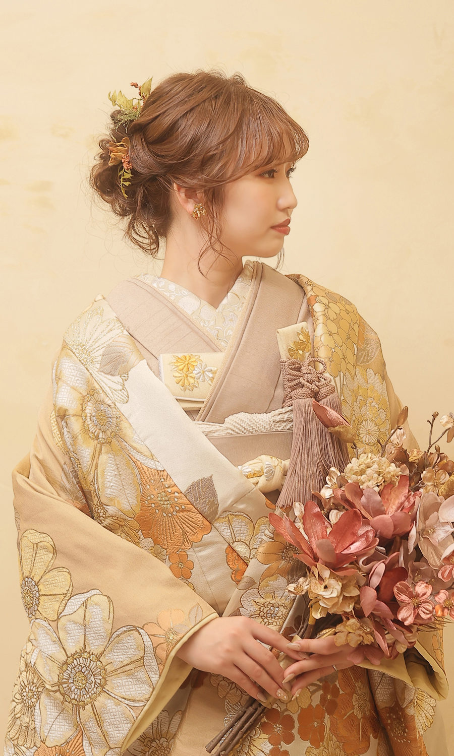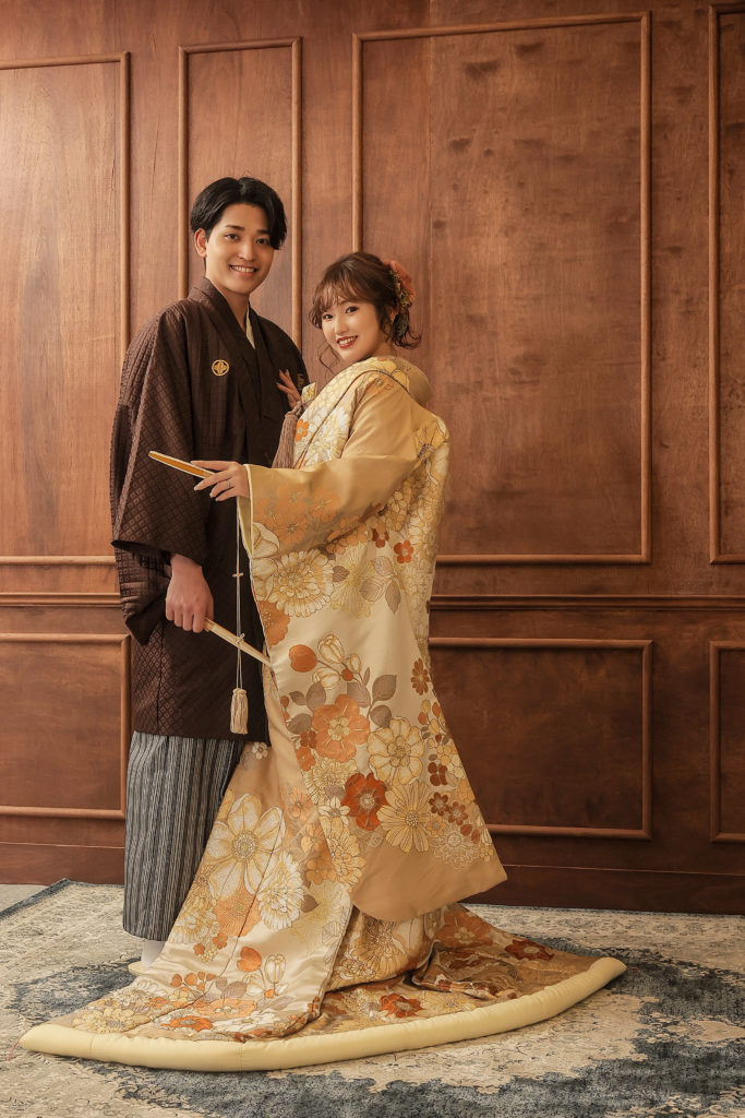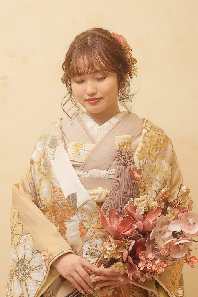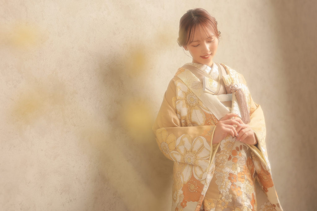 ゴールドの打掛に大人っぽさが