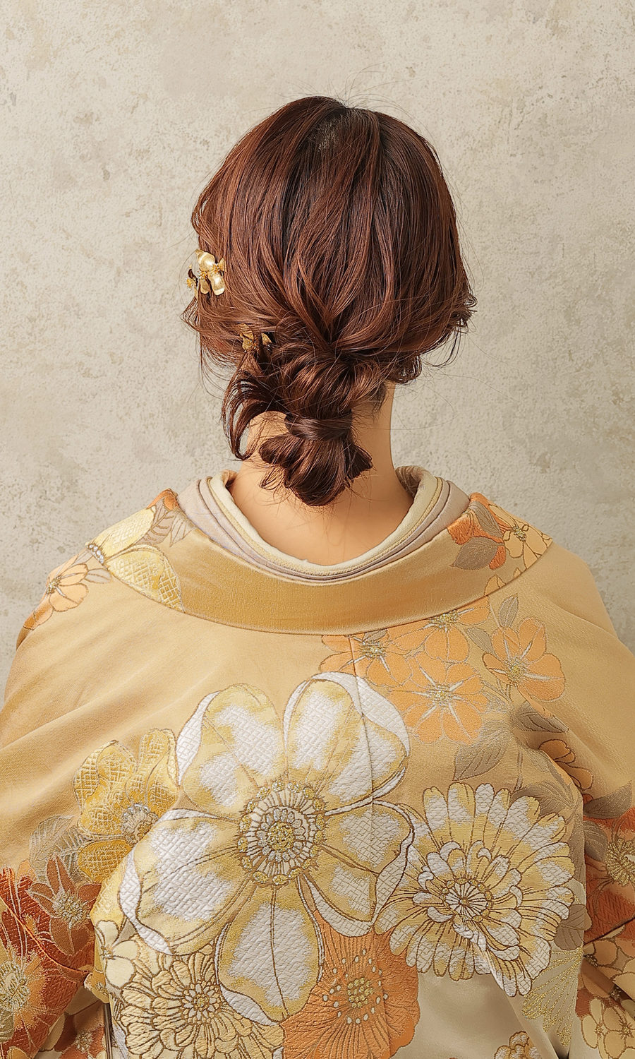 高級感溢れる色打掛に合わせたヘアメイク。