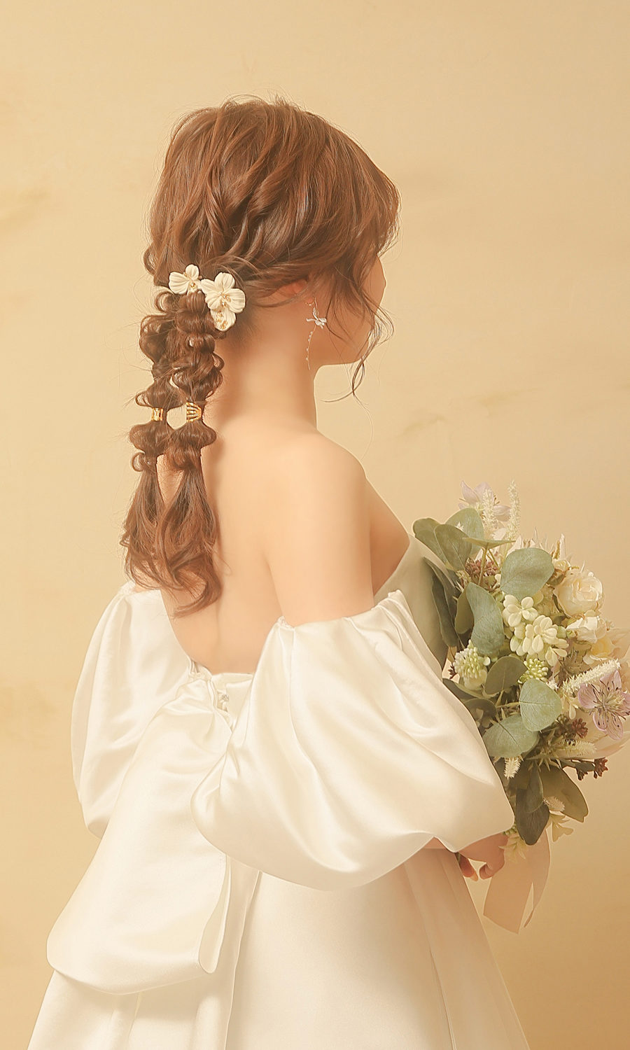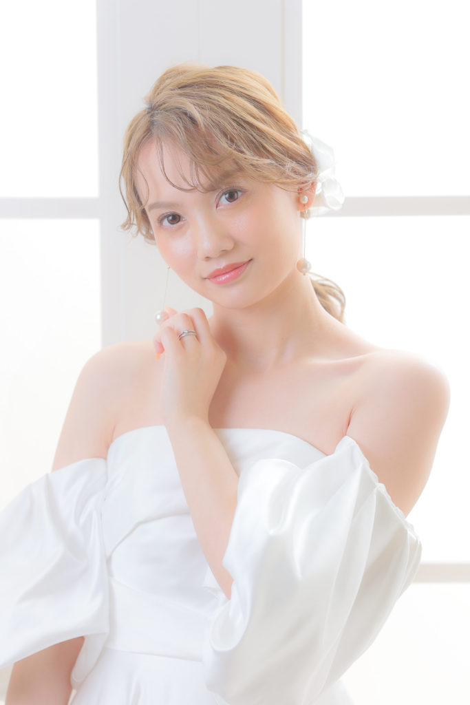 ウエディングドレスに合わせたヘアメイク。