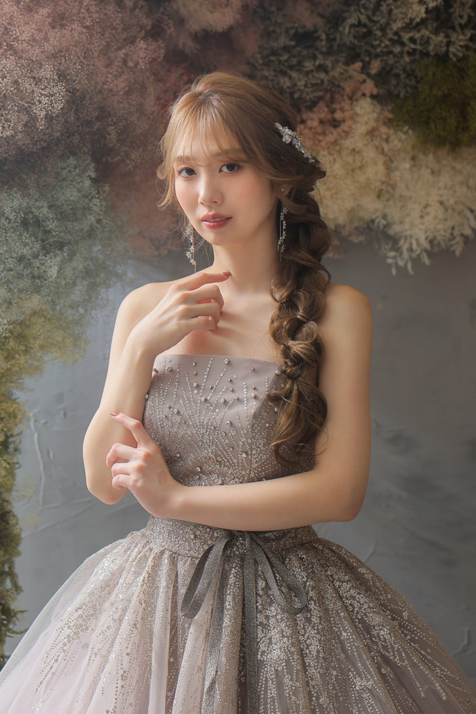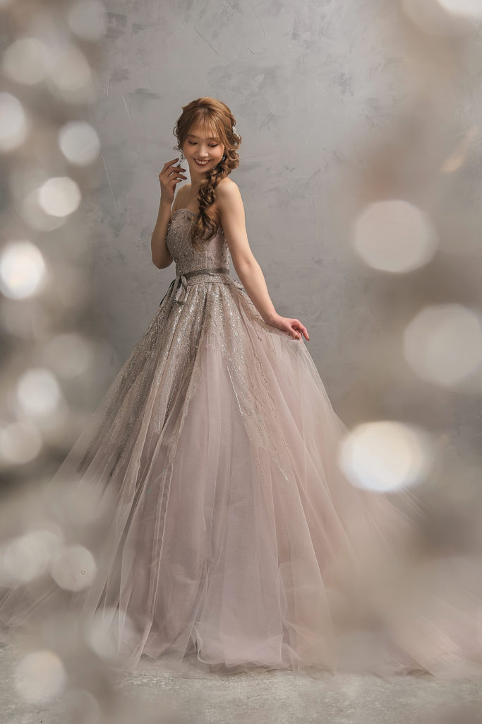 グレイッシュピンクのカラードレスと