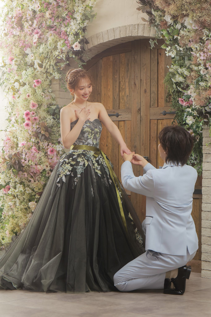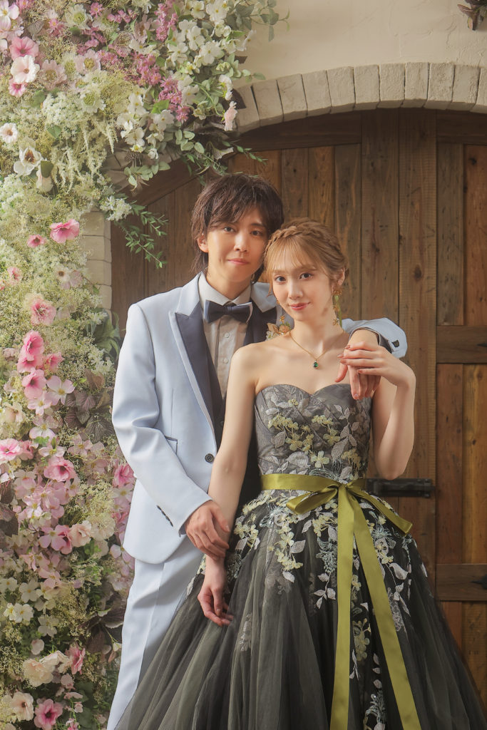 お花の刺繍がいっぱいのカラードレスがぴったり◎