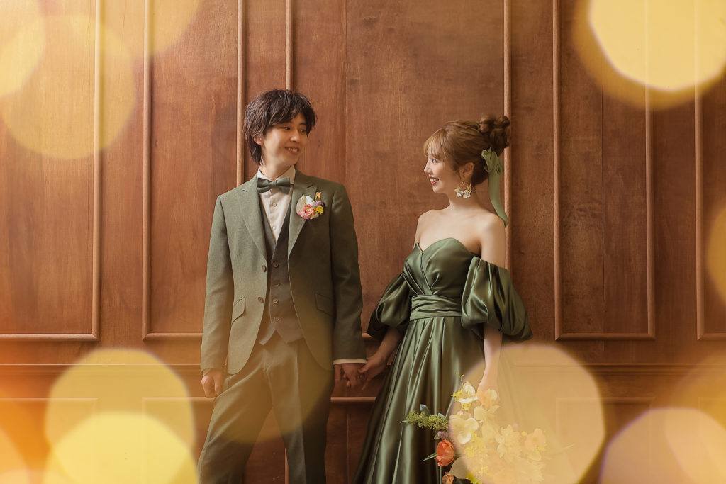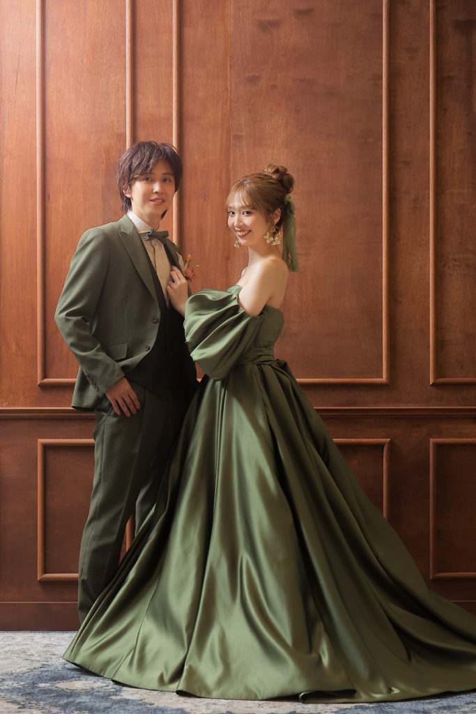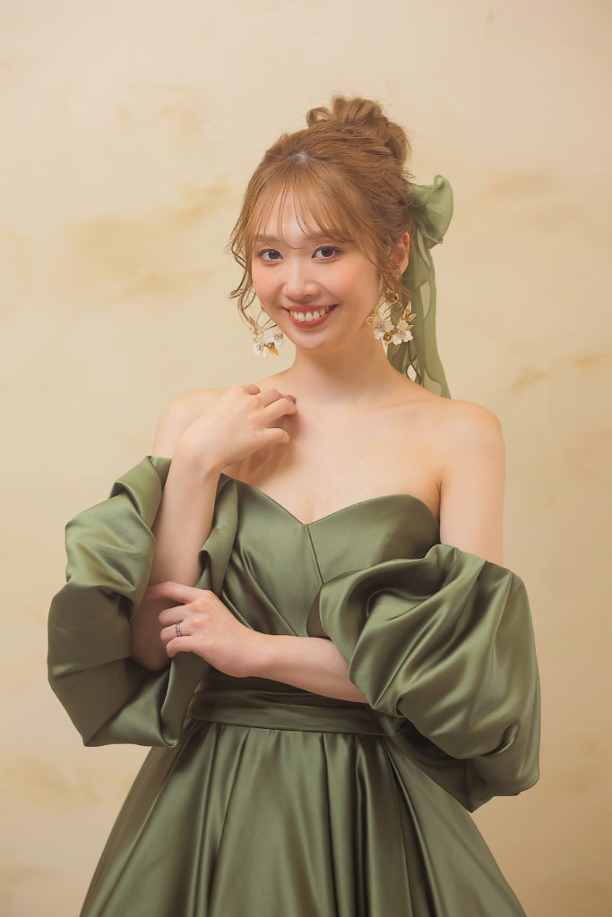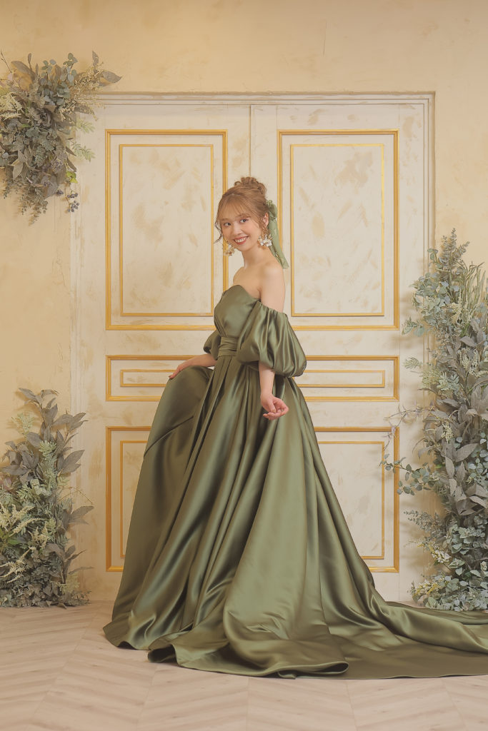 モスグリーンのカラードレスに