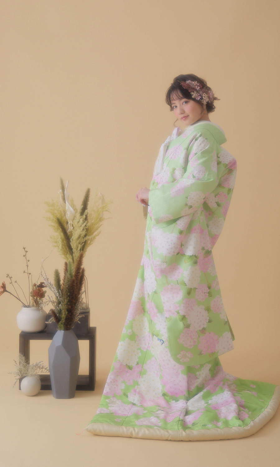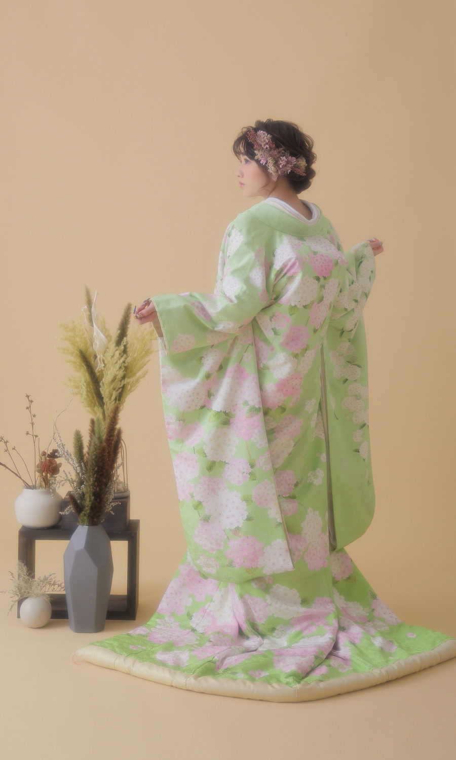 人気カラーの淡めグリーンを使用した色打掛𓂃𓈒𓏸