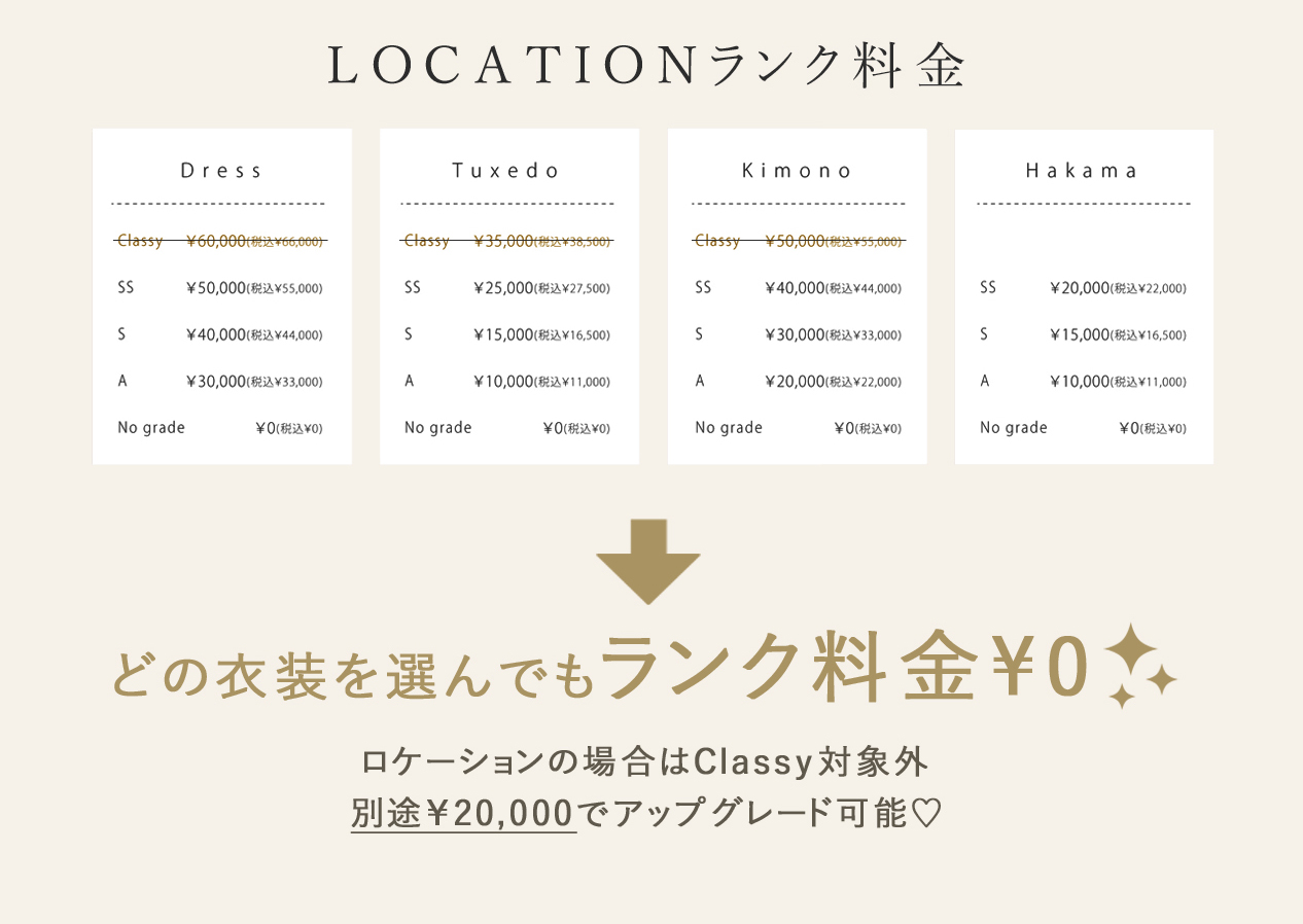 通常プランはお選び頂く衣装によって