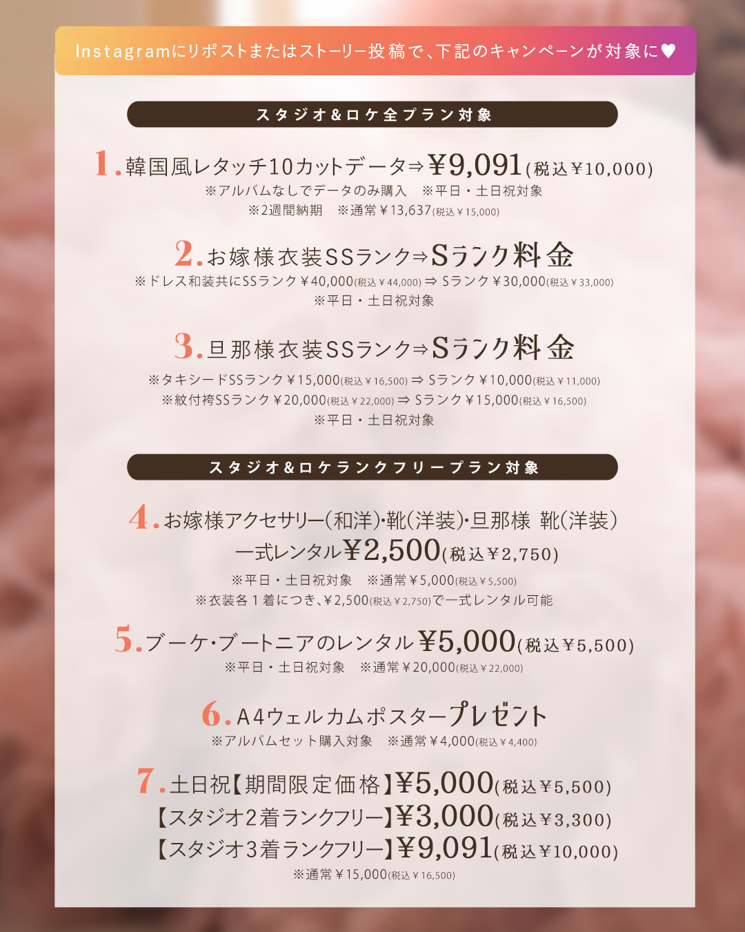 対象プラン:スタジオ・ロケ全プラン