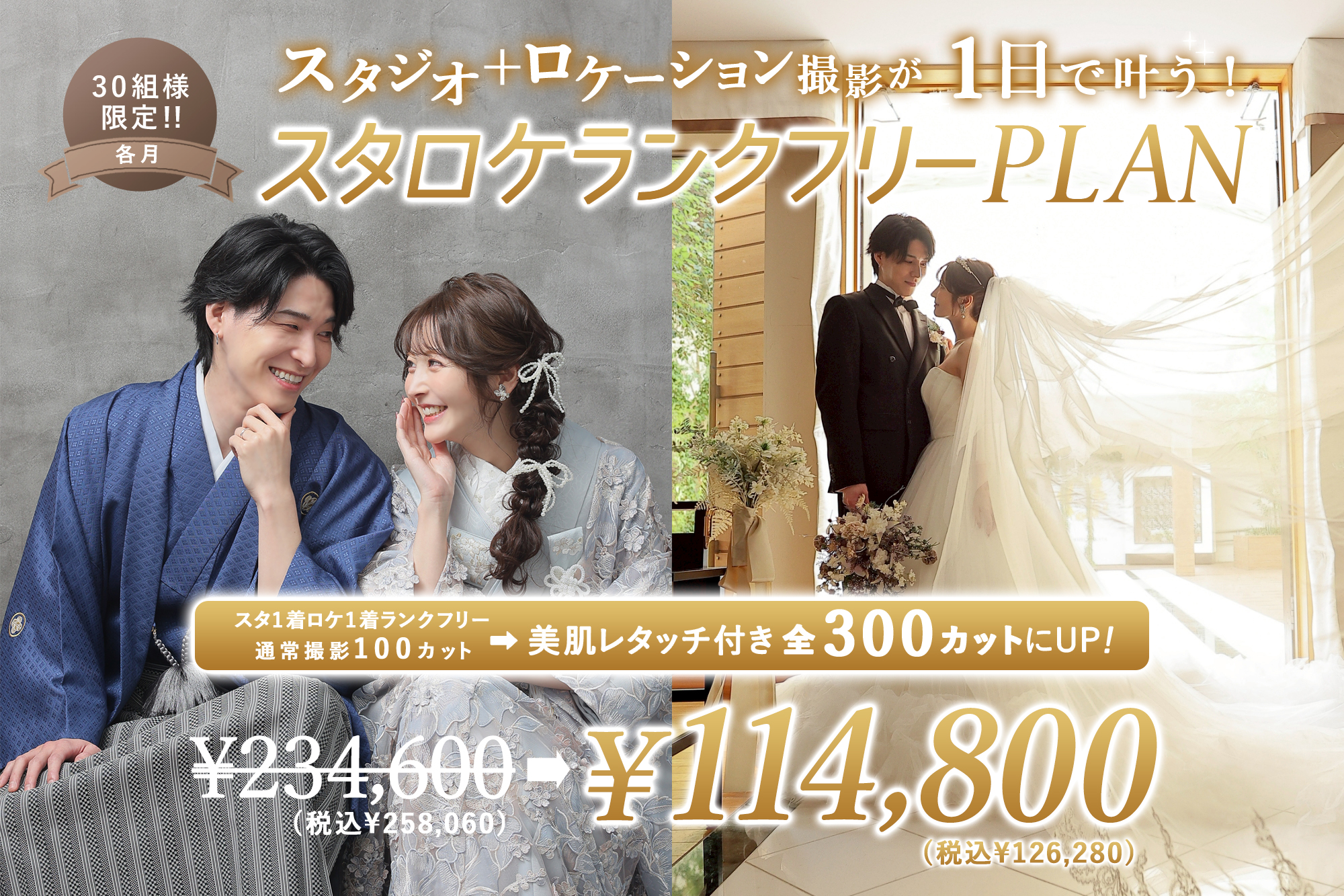 ※ロケーション撮影の場合はご新郎・ご新婦様それぞれ着数分の クリーニング料金が1着につき5,500円発生いたします。